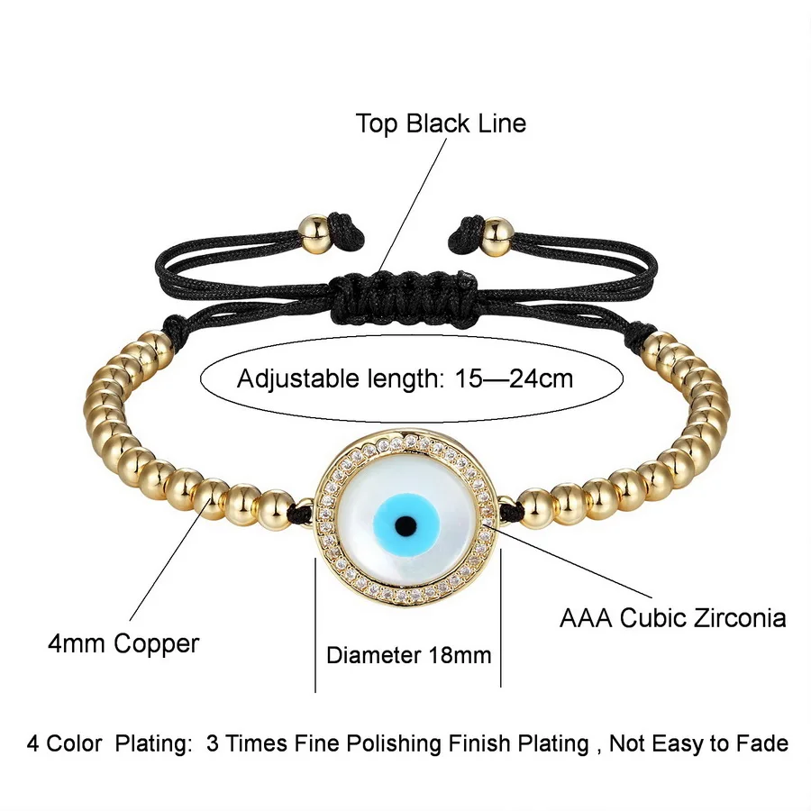 | Name | Bead Big Round Evil Eye with Micro Pave Cubic Zircon Women Bracelet |