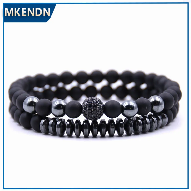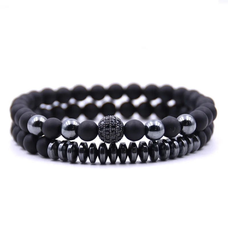 Fashion Pave CZ Men Bracelet – Stone Beads With Hematite
